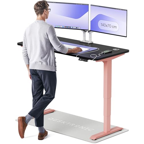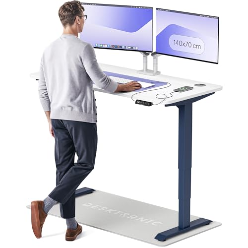 Desktronic Bureau Assis-Debout Électrique – Hauteur Réglable et Stabilisée – Commande Tactile avec Mémoires – Ports USB Intégrés – Tableau Assis-Debout 140x70cm