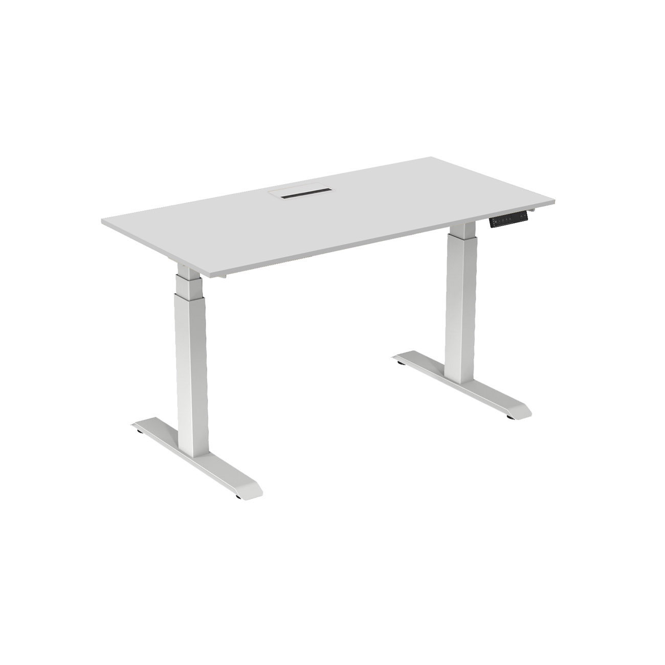 Bureau assis-debout Activ'o - Réglage électrique en hauteur - L.140 x P.80 cm - Plateau Blanc avec top access - Pieds métal Gris