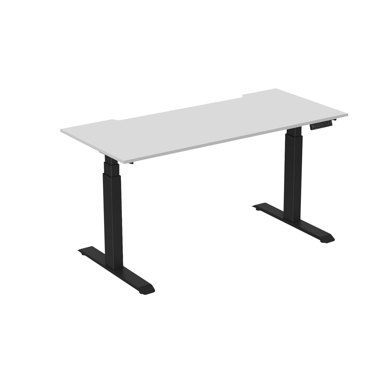 Bureau assis-debout Activ'o - Réglage électrique en hauteur - L.160 x P.80 cm - Plateau Blanc avec échancrure - Pieds métal Noir