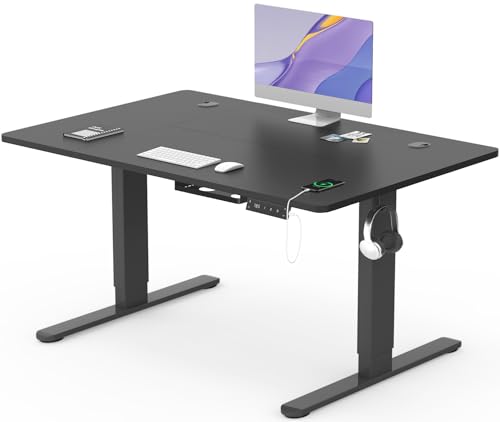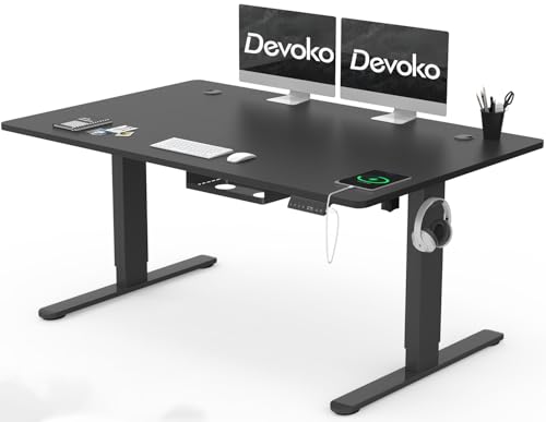 Devoko Bureau Assis Debout Électrique 140×80cm, Bureau Électrique avec Chargeur USB, Organiseur de Câbles et 3 Positions Mémorisables, Bureau Réglable en Hauteur (140×80cm,Noir)