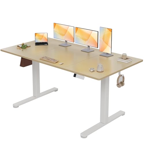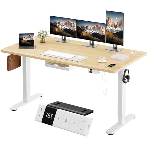 Devoko Bureau Assis Debout Électrique 160×80cm, Bureau Électrique avec Chargeur USB, Organiseur de Câbles et 3 Positions Mémorisables, Bureau Réglable en Hauteur (160×80cm,Beige)