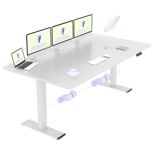 FLEXISPOT Bureau Assis Debout 180 x 80 cm avec 2 Moteurs Puissants, Bureau Stable Réglable en Hauteur, Électrique avec Fonction Mémoire (Blanc + Blanc)