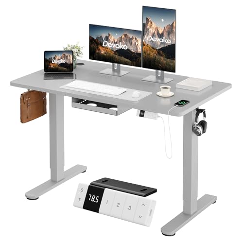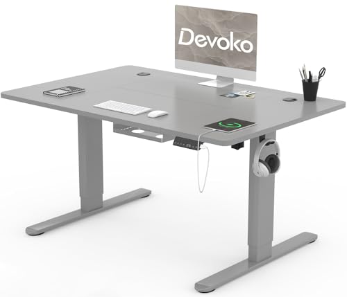 Devoko Bureau Assis Debout Électrique 140×80cm, Bureau Électrique avec Chargeur Type-C, Organiseur de Câbles et 3 Positions Mémorisables, Bureau Réglable en Hauteur (140×80cm,Gris)