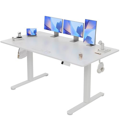 WALKINGDESK Bureau Assis Debout Électrique, 140 x 60 cm Ergonomique Bureau Réglable en Hauteur avec 4 Préréglages de Mémoire, Standing Desk, Blanc