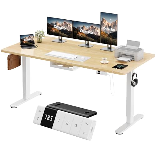Devoko Bureau Assis Debout 140×60cm avec Support de Moniteur Bureau Réglable en Hauteur Électrique avec 2 Hauteurs de Mémoire pour Travailler