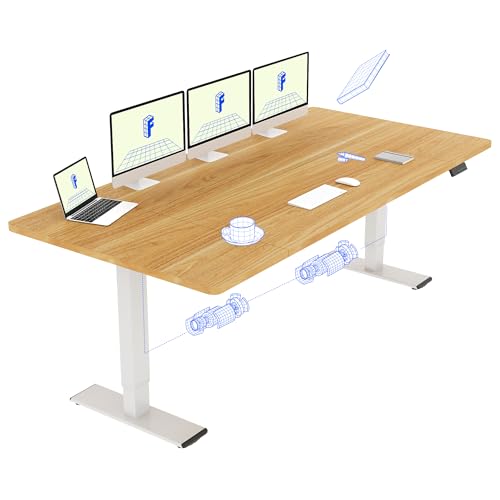 FLEXISPOT Bureau Assis Debout 180 x 80 cm avec 2 Moteurs Puissants, Table Stable Réglable en Hauteur, Bureau Électrique avec Fonction Mémoire (Blanc + Maple)