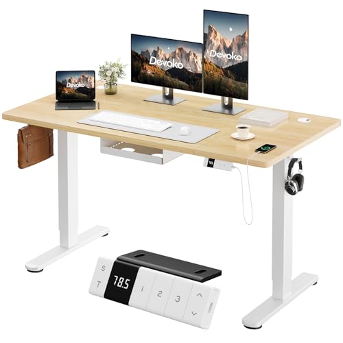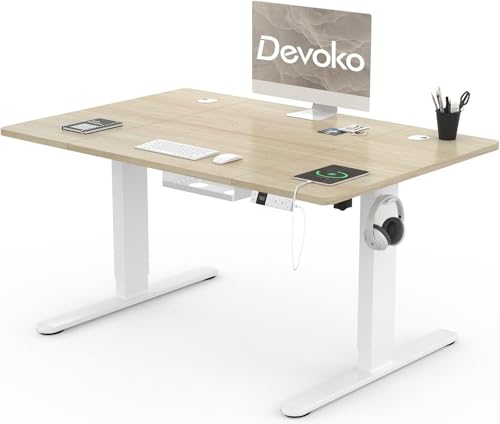 Devoko Bureau Assis Debout Électrique 140×80cm, Bureau Électrique avec Chargeur USB, Organiseur de Câbles et 3 Positions Mémorisables, Bureau Réglable en Hauteur (140×80cm,Beige)