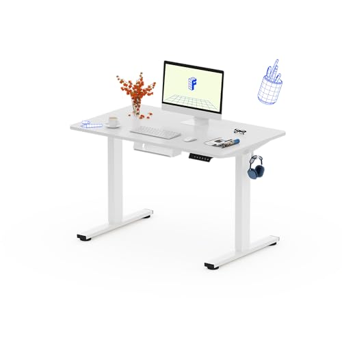 FLEXISPOT Bureau Assis Debout 100x60cm, Plateau Complet, Bureau Réglable en Hauteur Électrique, Bureau Informatique avec Crochet et Rappel Position Assis-Debout, Blanc