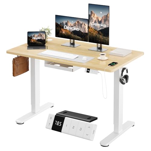 Devoko Bureau Assis Debout Électrique 120×80cm, Bureau Électrique avec Chargeur Type-C, Organiseur de Câbles et 3 Positions Mémorisables, Bureau Réglable en Hauteur (120×80cm,Beige)