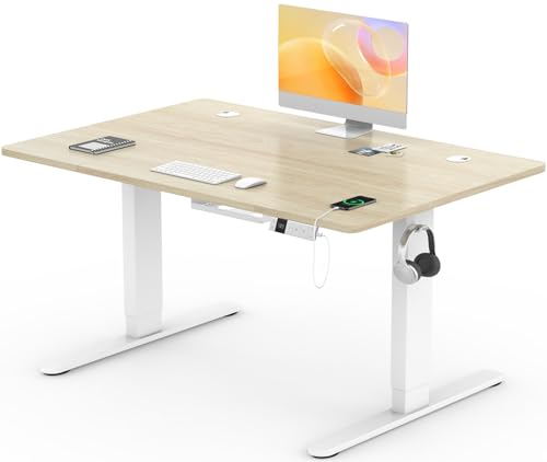 SANODESK QS1 Bureau Assis Debout Électrique 110x54 cm Plateau Complet, Bureau Gaming, Bureau Debout Réglable en Hauteur avec Système Anti-Collision, Fonction Mémoire 4 Hauteurs, Érable