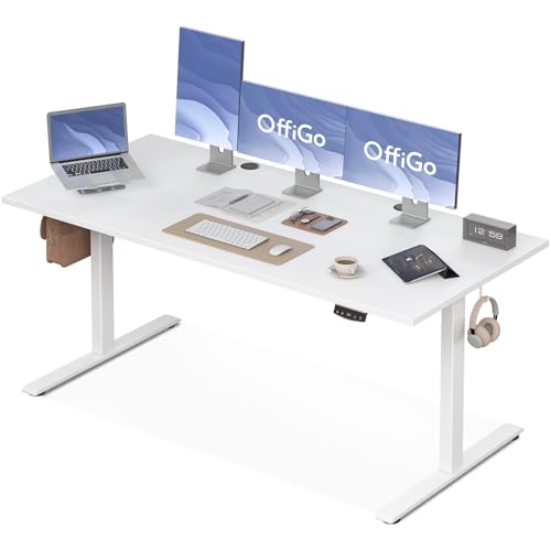OffiGo Bureau Assis Debout électrique, 160cm Bureau Electrique, Ergonomiqu Table avec 3 Fonction Mémoire, Standing Desk pour la Chambre et Le Travail, Blanc