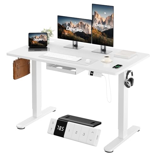 Devoko Bureau Assis Debout Électrique 120×80cm, Bureau Réglable en Hauteur avec Port de Charge USB, 3 Positions Mémorisables, Boîte de Câbles