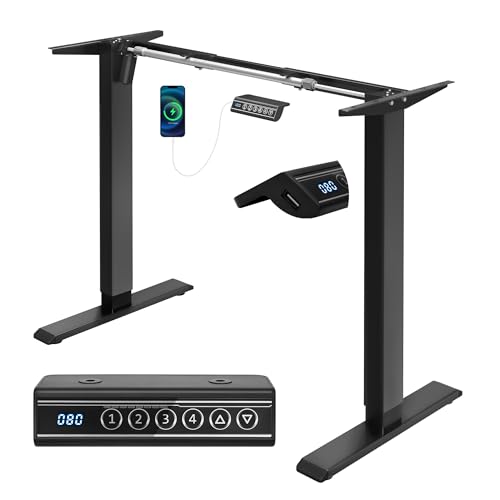 ERGOMAKER Bureau Assis Debout Électrique,Cadre pour Bureau Debout avec Fonction mémoire et Soft-Start/Stop, Télescope Double (Noir)