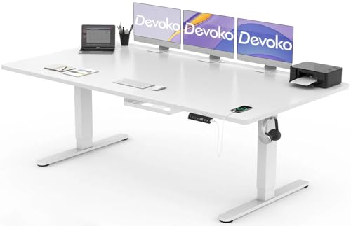 Devoko Bureau Assis Debout Électrique 180×80cm, Bureau Électrique avec Chargeur Type-C, Organiseur de Câbles et 3 Positions Mémorisables, Bureau Réglable en Hauteur (180×80cm,Blanc)