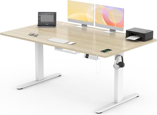 FLEXISPOT Bureau Assis Debout 160 x 70 cm avec 2 Moteurs Puissants, 100kg Charge, Bureau Électrique avec Fonction Mémoire (Blanc + Maple)