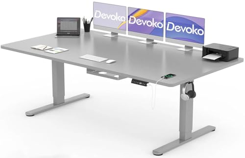 Devoko Bureau Assis Debout Électrique 200×80cm, Électrique avec Chargeur USB Organiseur de Câbles et 3 Positions Mémorisables, Réglable en Hauteur (200×80cm,Gris)