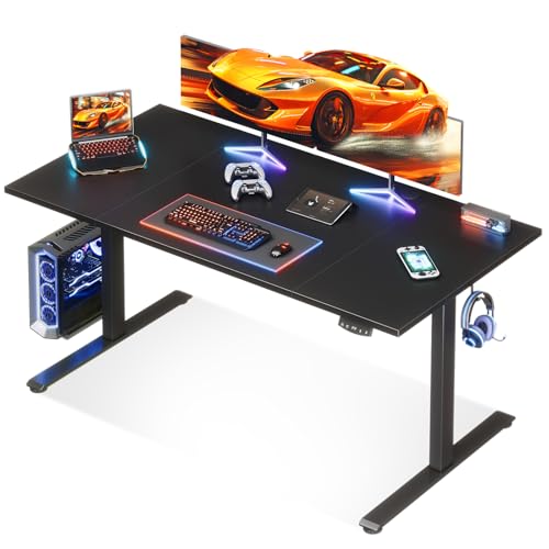 Homall Bureau Assis Debout 120cm, Bureau Réglable en Hauteur Électrique, 3 Hauteurs de Mémoire pour Travailler, Système Anti-Collision, Crochet pour Casque,Noir