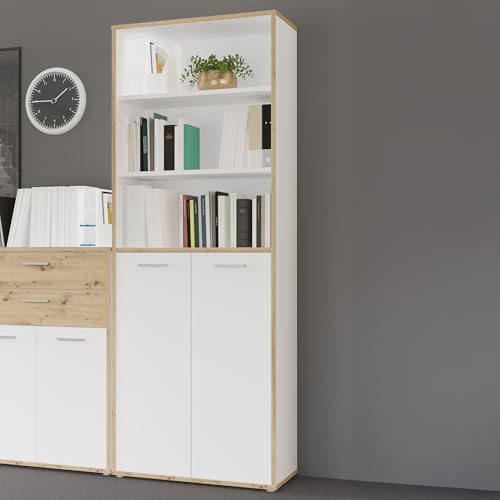 Forte KEFLAVIK 80 90 Étagère de Bureau Moderne avec 2 étagères et 2 Portes d'armoire en Bois de chêne Artisan décor Bois Blanc 84,5 cm de Large x 226,5 cm de Haut x 41,5 cm de Profondeur