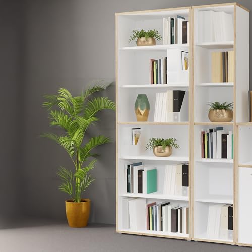 Forte KEFLAVIK Bibliothèque 40 50, étagère de Bureau Moderne avec 5 étagères, matériau en Bois, décor chêne Artisanal, Blanc, 44,8 cm de Large x 226,5 cm de Haut x 41,5 cm de Profondeur