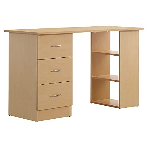 HOMCOM Bureau avec Rangement, Table Informatique 120 x 50 cm, Bureau d'ordinateur avec étagères et tiroirs, pour Petits espaces, Chambre à Coucher, Aspect Bois Clair