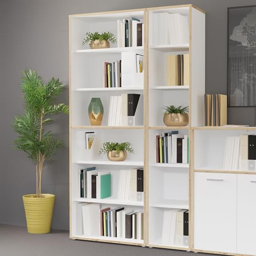 Forte KEFLAVIK 80 90 Étagère de Bureau Moderne avec 5 étagères, matériau dérivé du Bois, décor chêne Artisanal, Blanc, 84,5 cm de Large x 226,5 cm de Haut x 41,5 cm de Profondeur