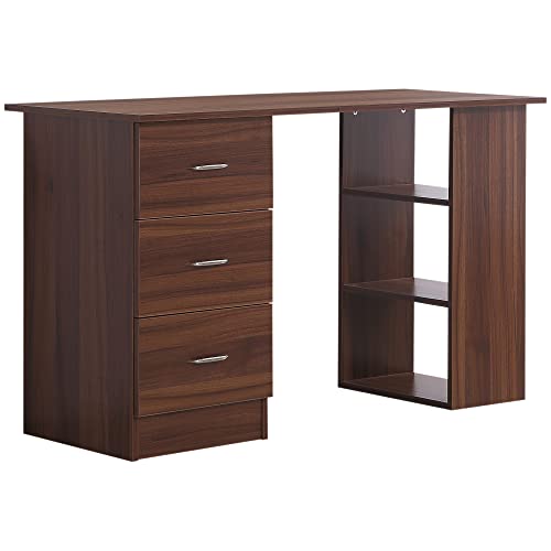HOMCOM Bureau avec Rangement, Table Informatique 120 x 50 cm, Bureau d'ordinateur avec étagères et tiroirs, pour Petits espaces, Chambre à Coucher, Aspect Noyer