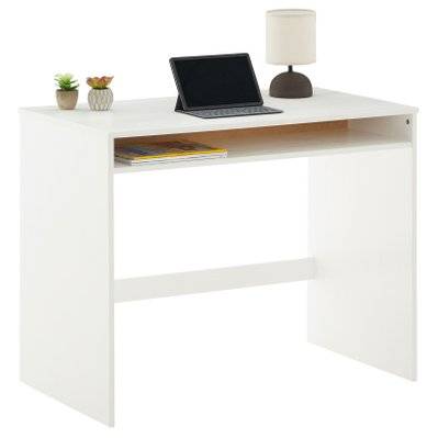 Bureau moderne blanc avec niche de rangement MDF 117×50×76cm table d’ordinateur design multifonction