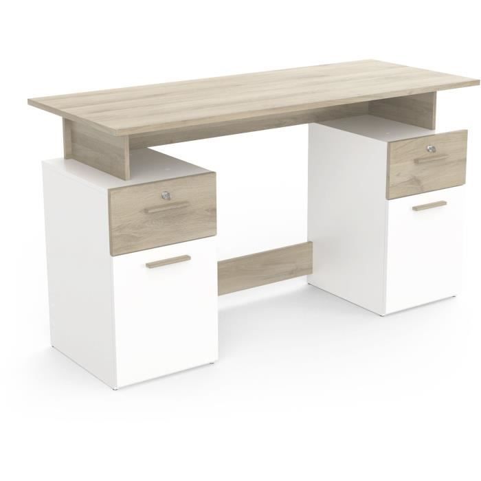 Vente Unique Bureau avec rangements ZACHARIE Blanc et chêne