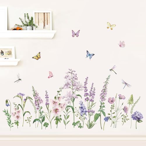 decalmile Stickers Muraux Fleurs des Rose Autocollant Mural Floral Rose Aquarelle Décoration Murale Chambre Bébé Fille Salon Bureau TV Mur