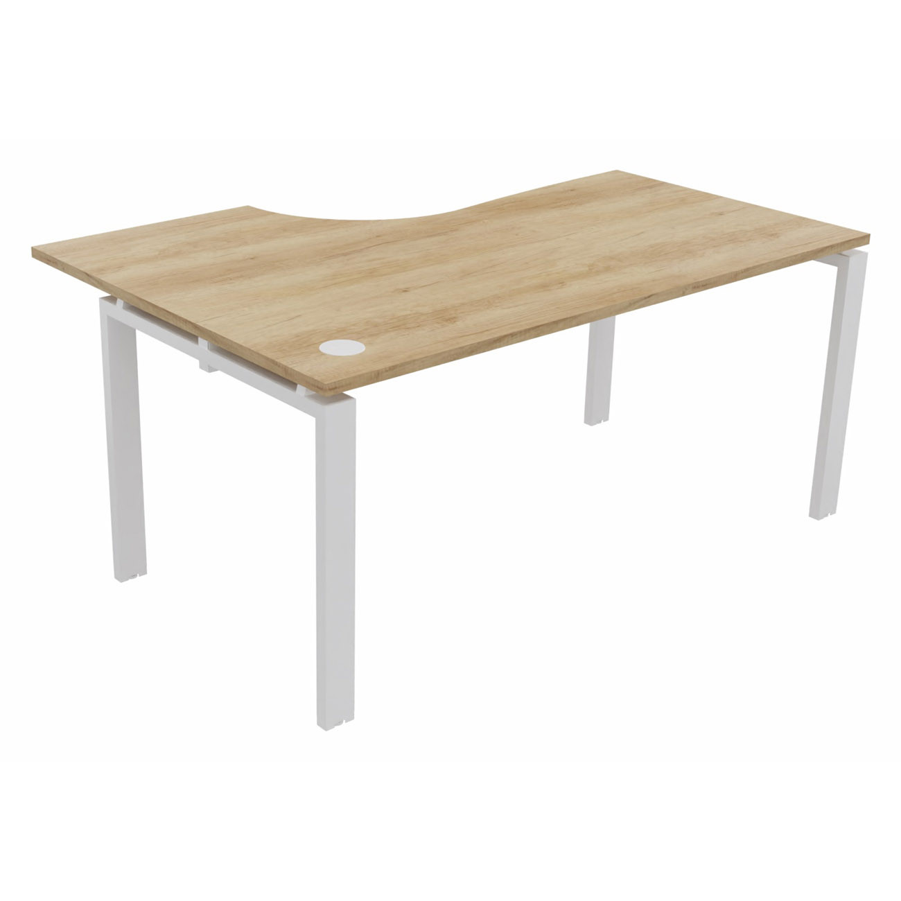 Bureau d'angle compact retour à droite E-link - L.160 x P.110 cm - Plateau Chêne - Pieds Blanc