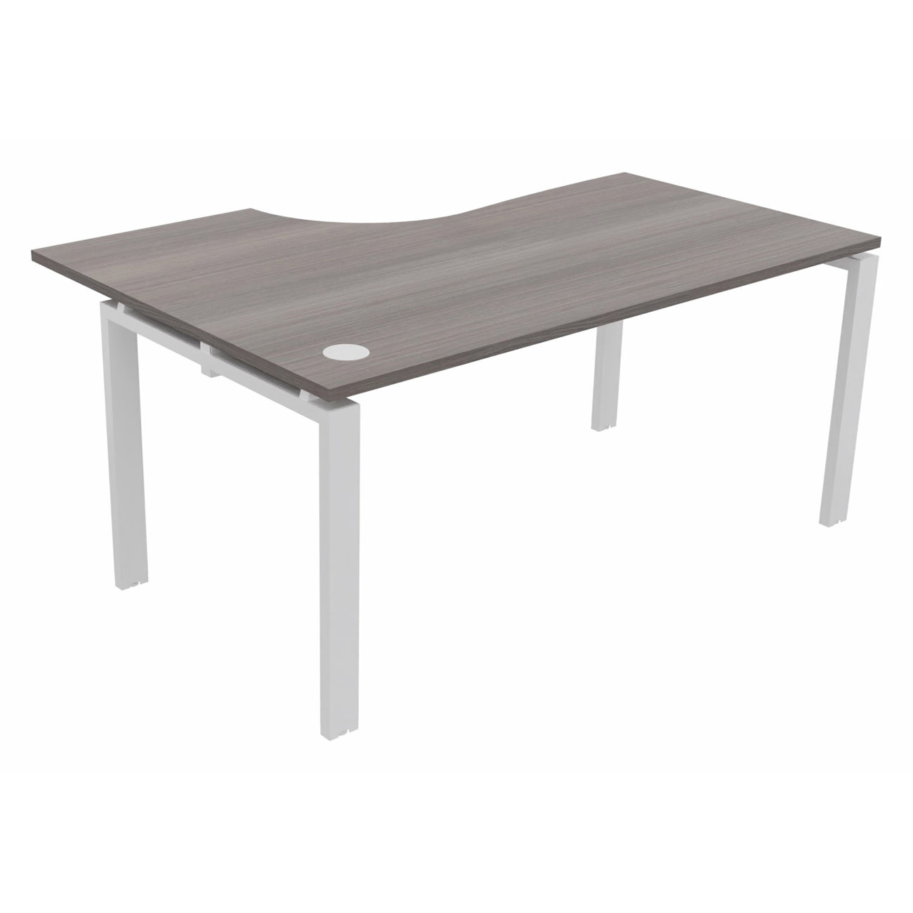Bureau d'angle compact retour à droite E-link - L.160 x P.110 cm - Plateau Chêne Nebraska - Pieds Blanc