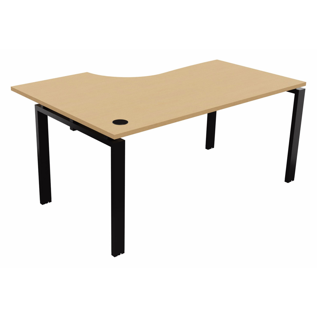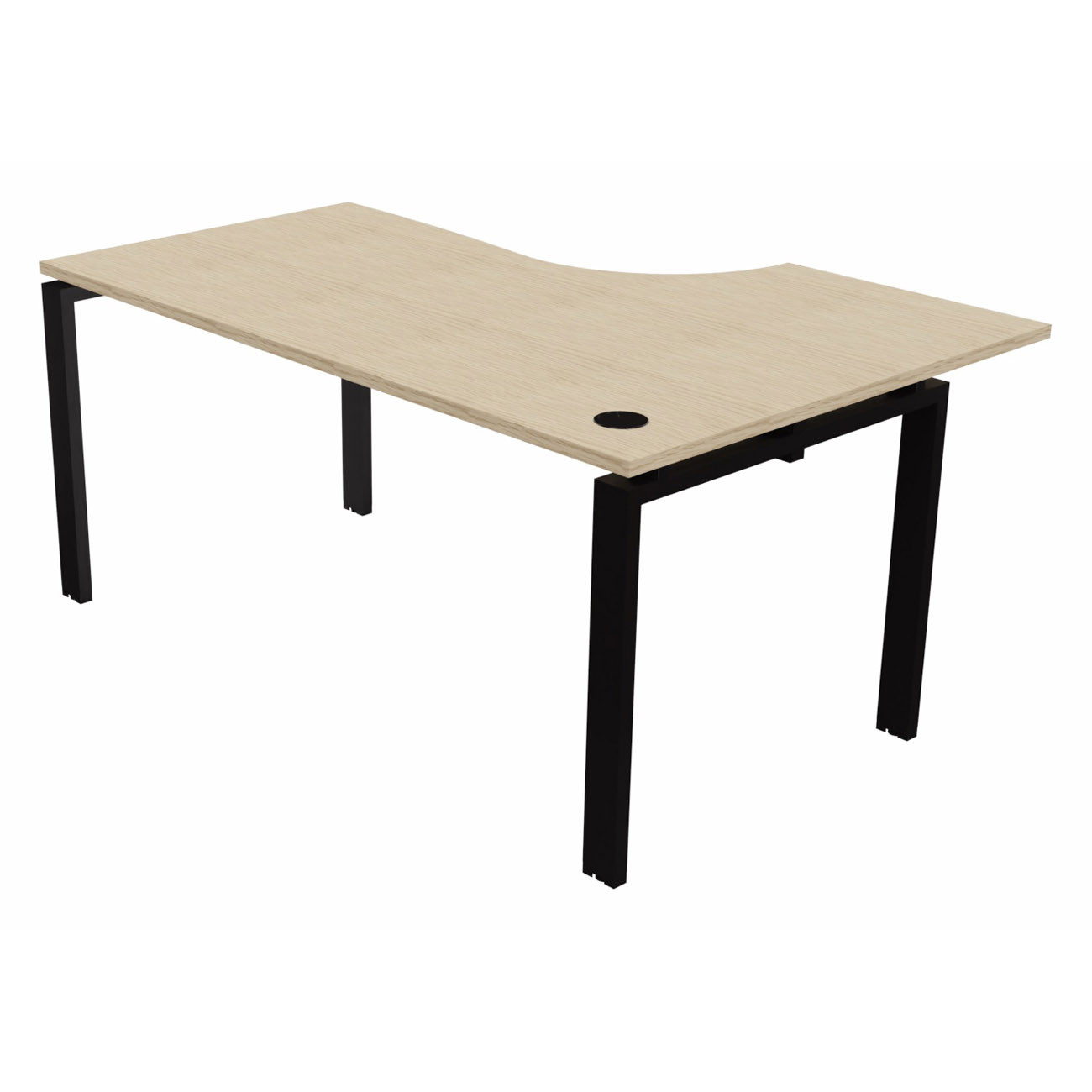 Bureau d'angle compact retour à droite E-link - L.160 x P.110 cm - Plateau Hêtre - Pieds Noir