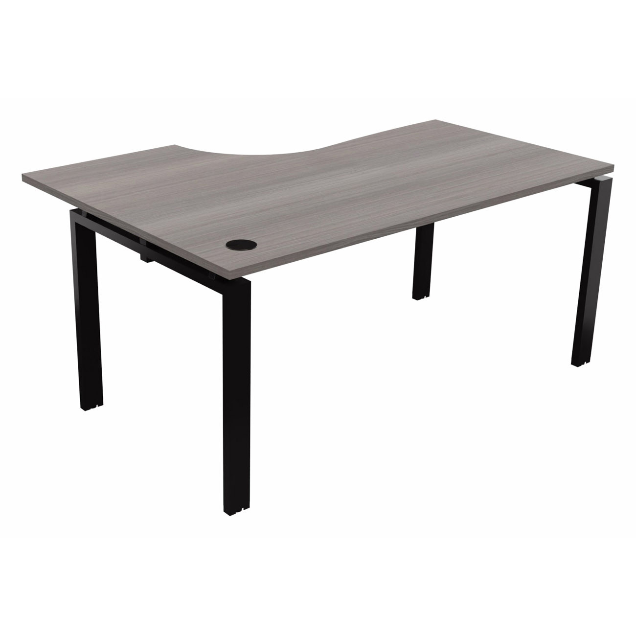 Bureau d'angle compact retour à droite E-link - L.160 x P.110 cm - Plateau Chêne Nebraska - Pieds Noir