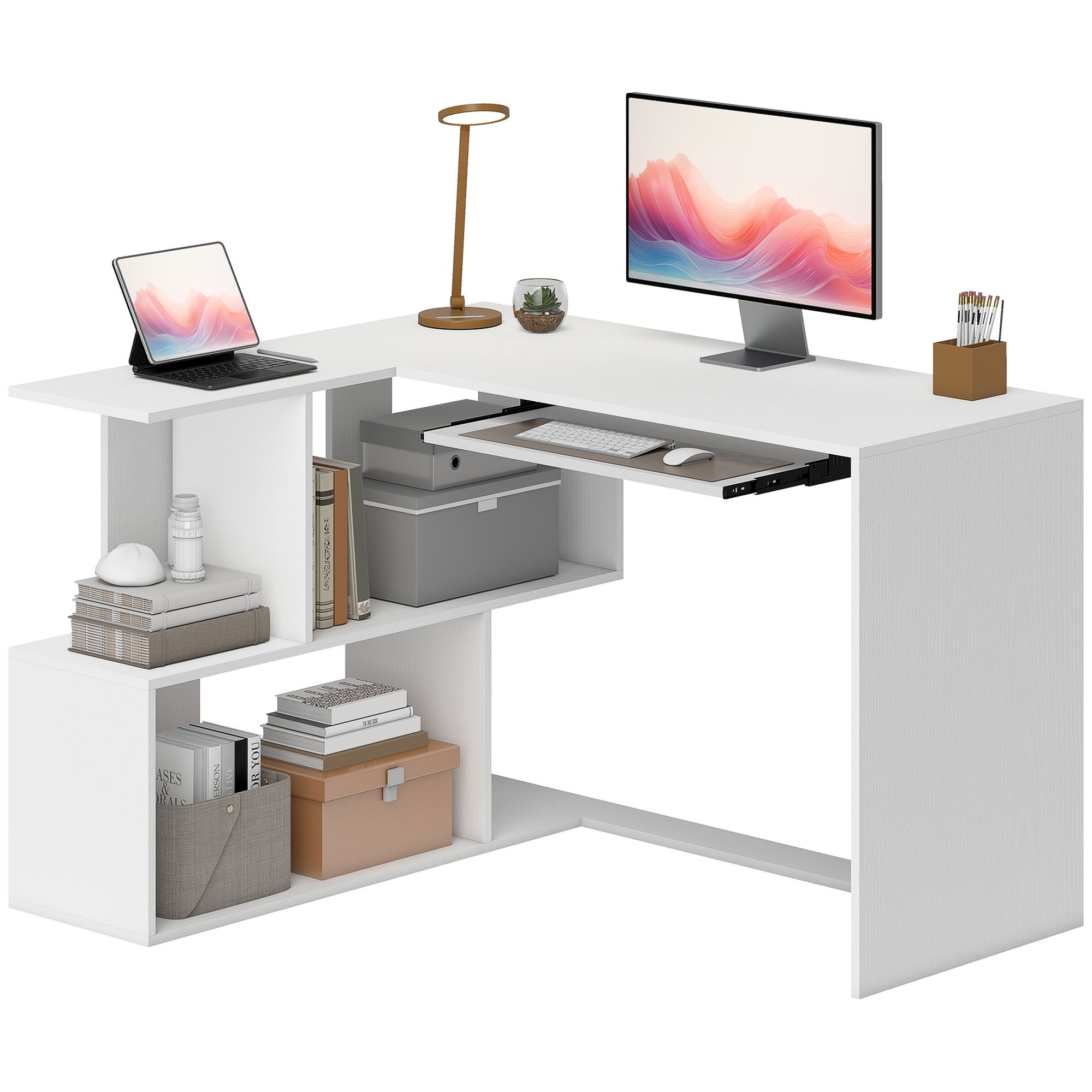 HOMCOM Bureau d'angle bureau en L avec étagères de rangement, plateau à clavier coulissant, 120x100x76cm, blanc
