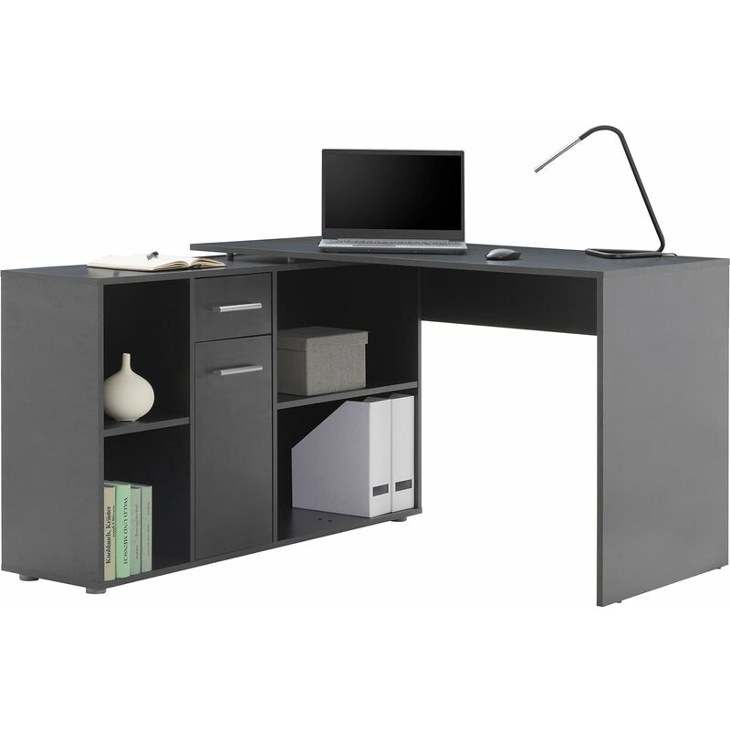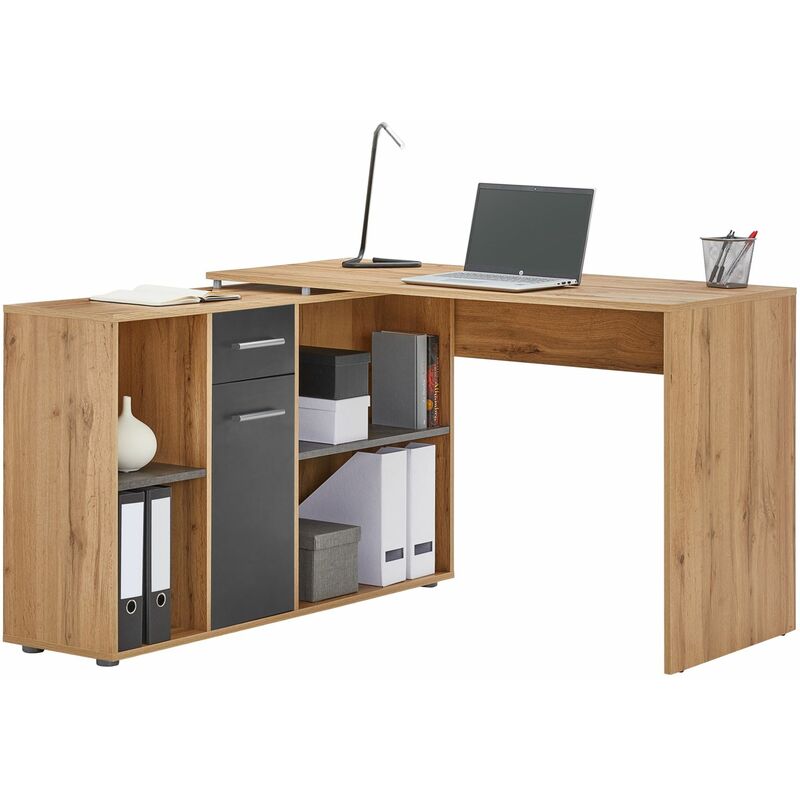 LAPOOH Bureau Gris béton 80x40x75 cm Aggloméré,Bureau avec Rangement,Rangement Bureau,Bureau d'angle
