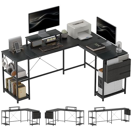 Coleshome Bureau Gaming, 120x70cm Bureau d'angle avec étagère de Rangement Réversible, Bureaux en L Peu Encombrant, Adapté comme Bureaux pc dans Les Coins Familiaux, Noir