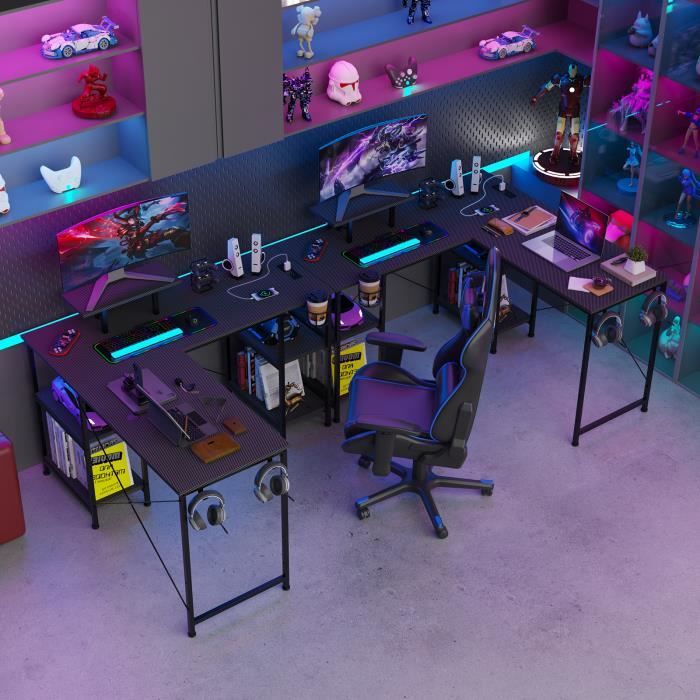 Bureau gaming noir, bureau gamer, bureau d'ordinateur, bureau de jeu bureau GAME bureau d'angle noir