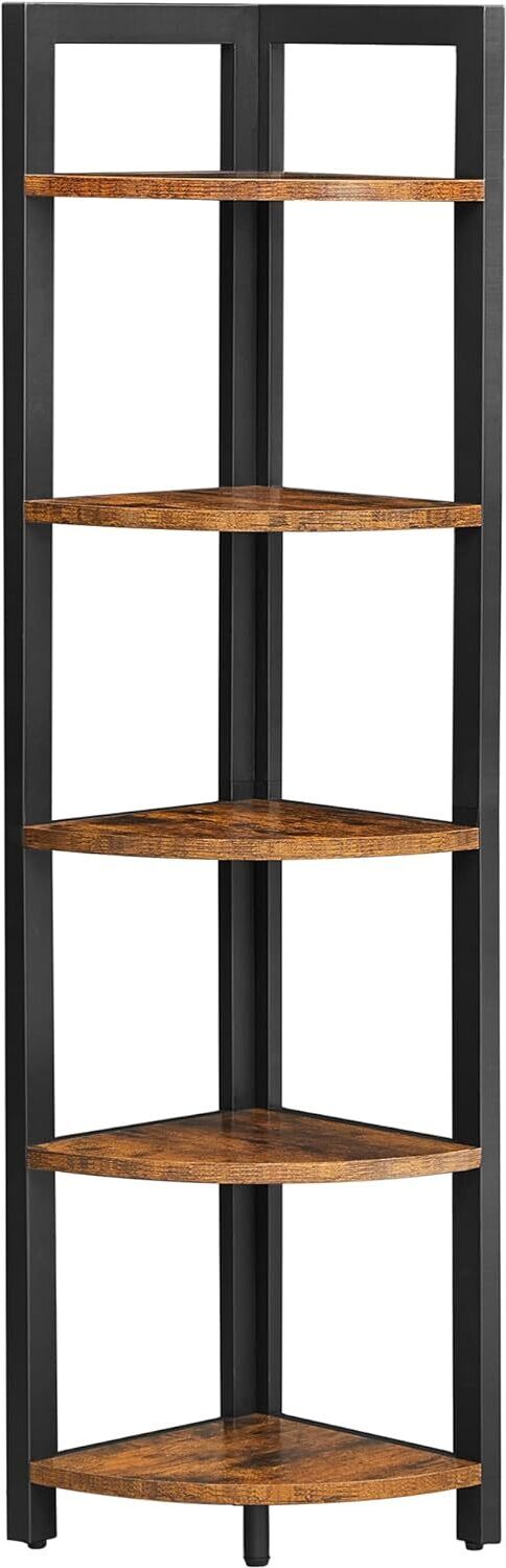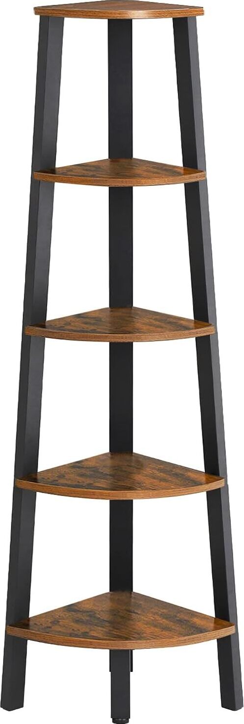 Vasagle étagère d'angle à 5 niveaux, bibliothèque du coin, meuble de rangement polyvalent, porte-plantes, pour salon, chambre, bureau, style industriel, marron rustique et noir 30 x 30 x 150 cm (L x l x H)