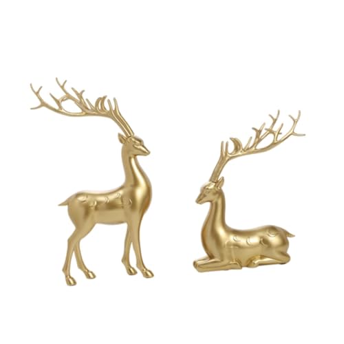 Baoblaze Lot de 2 Figurines de Rennes Assis et Debout, Ornements pour Bureau, Or