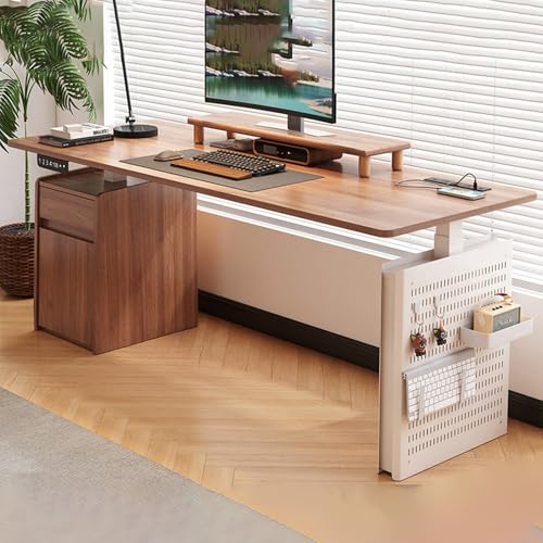 HLONONE Bureau Électrique Debout et Assis 180 x 80 cm avec Prise de Courant Intégrée 2 Tiroirs Amovibles Port USB-C Marron