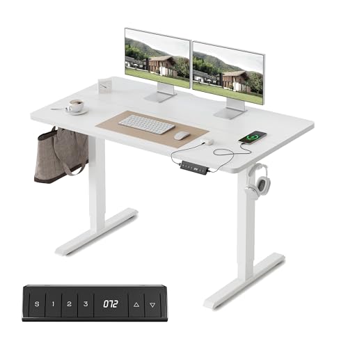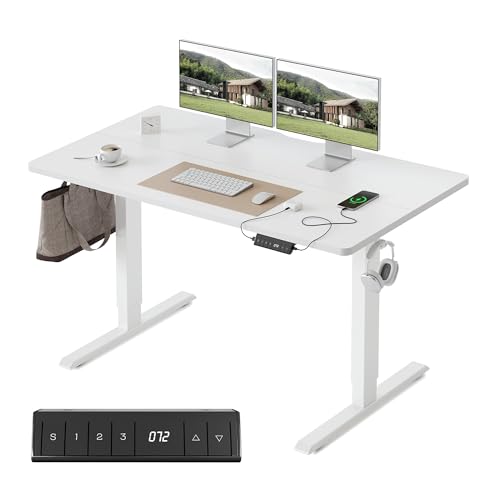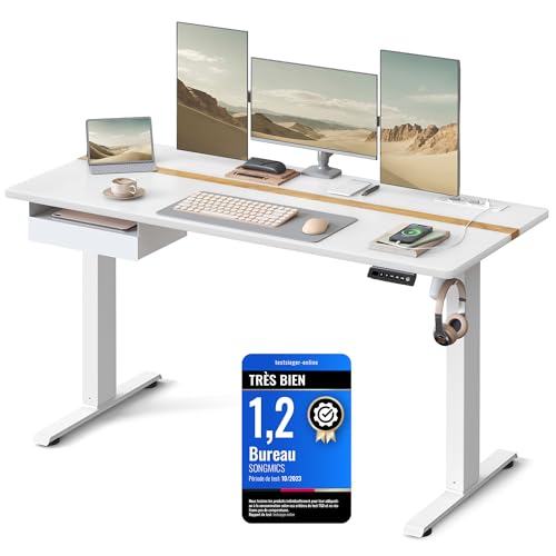 FEZIBO Bureau Électrique Réglable en Hauteur avec Ports de Charge USB-A et USB-C, 120 x 60 cm, Bureau Assis Debout, Ergonomique pour Télétravail, Blanc