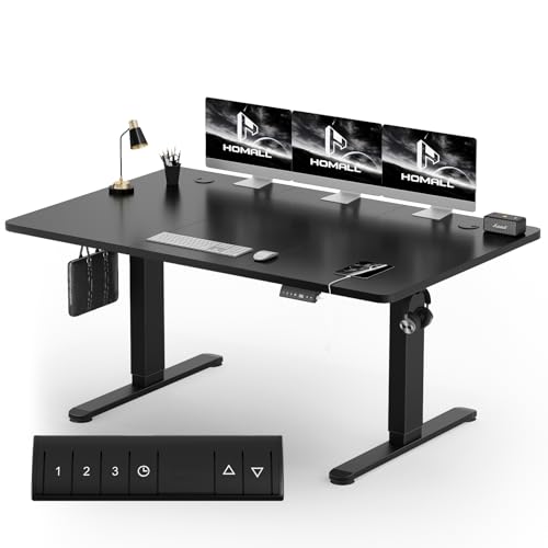 Homall Bureau Assis Debout Électrique 140x70 cm Bureau Réglable en Hauteur avec Fonction Mémoire et Système Anti-Collision, avec Plateau de Gestion des Câbles