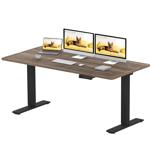 FEZIBO Bureau Électrique Réglable en Hauteur avec Ports de Charge USB-A et USB-C, 100 × 60 cm, Bureau Assis Debout, Ergonomique pour Télétravail, Marron