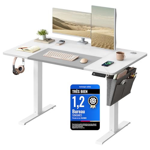 SONGMICS Bureau Électrique Réglable en Hauteur, 120 x 60 cm, Table Assis-Debout, Fonction Mémoire 4 Hauteurs, pour Bureau, Télétravail, Blanc Nuage et Gris Tourterelle LSD015W02