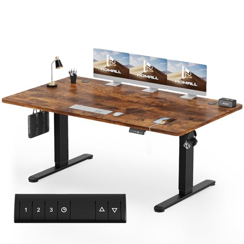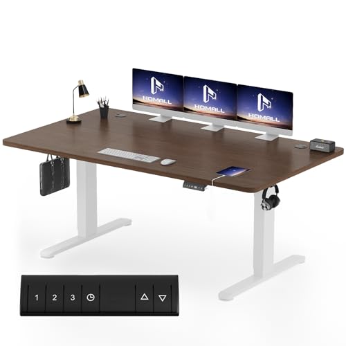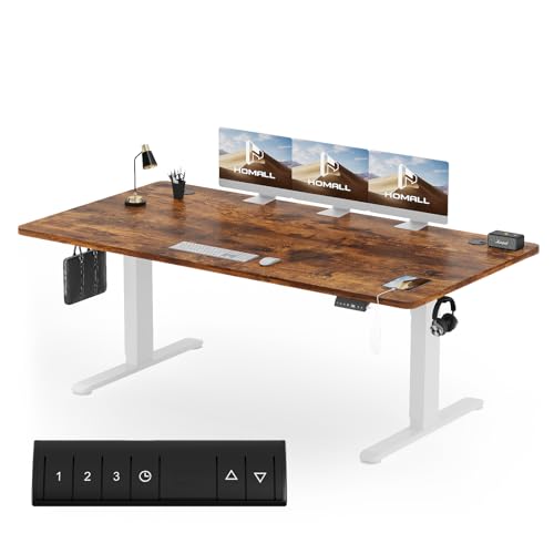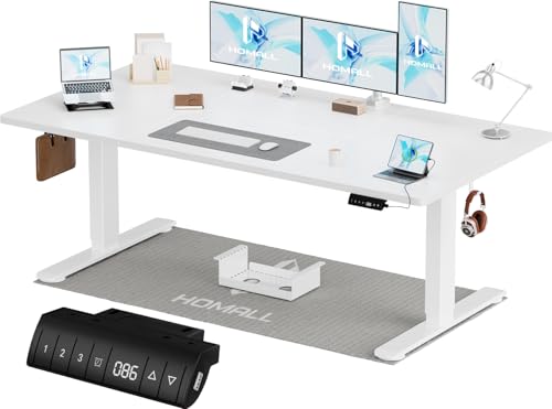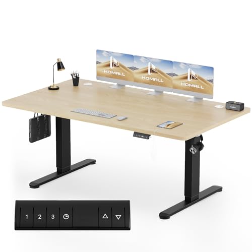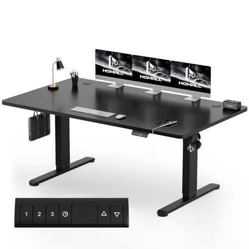 Homall Bureau Assis Debout Électrique 160x80 cm Bureau Réglable en Hauteur avec Fonction Mémoire et Système Anti-Collision, avec Plateau de Gestion des Câbles