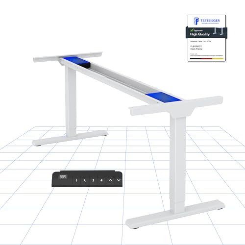 FLEXISPOT Basic Bureau Assis Debout Bureau Électrique Réglable en Hauteur, Cadre en Acier à 2 Étages avec Puissant MoteurBouton, Haut et Bas, Blanc Pour Travail, Industriel
