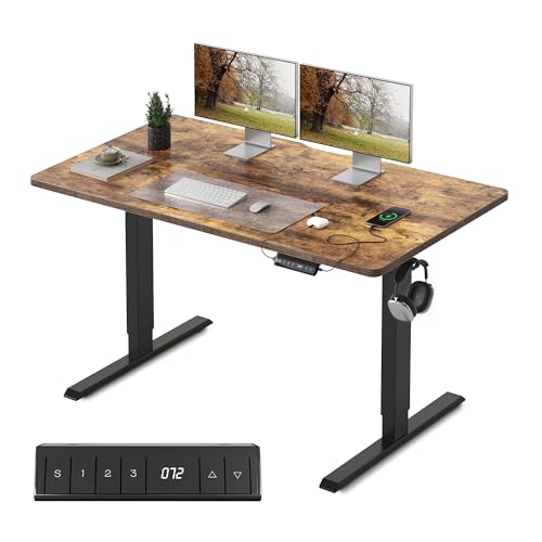 FEZIBO Bureau Électrique Réglable en Hauteur avec Ports de Charge USB-A et USB-C, 120 x 60 cm, Bureau Assis Debout, Ergonomique pour Télétravail, Marron