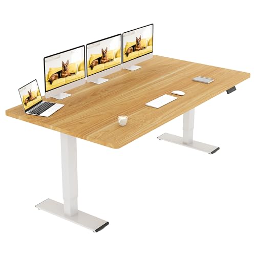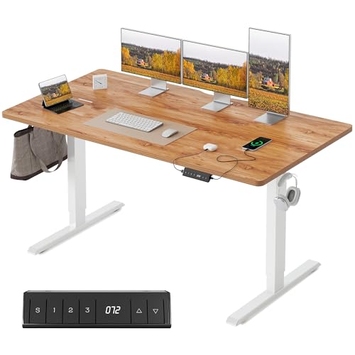 FEZIBO Bureau Électrique Réglable en Hauteur avec Ports de Charge USB-A et USB-C, 100 × 60 cm, Bureau Assis Debout, Ergonomique pour Télétravail, Planche Chêne Blanc