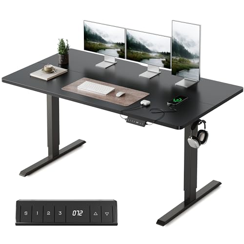 FEZIBO Bureau Électrique Réglable en Hauteur avec Ports de Charge USB-A et USB-C, 140 x 70 cm, Bureau Assis Debout, Ergonomique pour Télétravail, Noir