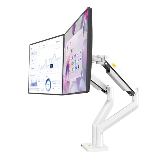 ONKRON Support Ecran PC 2 Ecran 13–32 Pouces Jusqu’à 8 kg Chacun, Bras Ecran PC Double Ressort à Gaz, Bras Articulé Écran VESA 75x75-100x100, Support de Bureau pour 2 Écrans Blanc G160-W